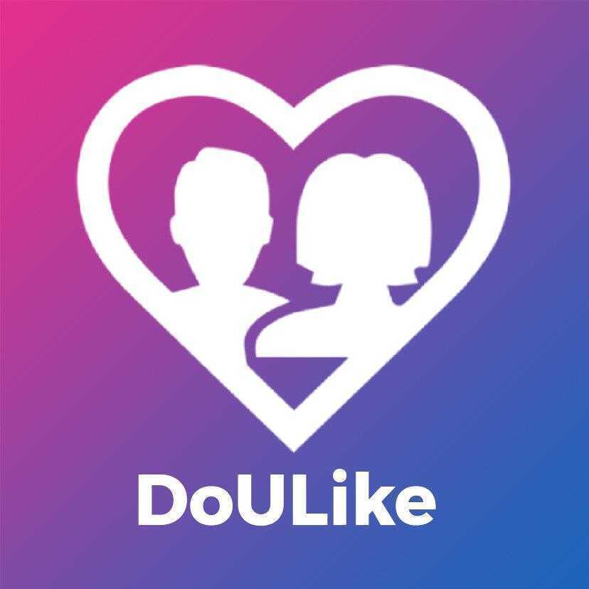 DoULike is a dating app designed to help people connect and build meaningful relationships. The logo features a white silhouette of a man and woman inside a heart, symbolizing love and companionship. Set against a gradient background of pink and blue, the design conveys warmth and inclusivity. The heart shape aligns with the common theme of love in dating app branding, making it instantly recognizable.